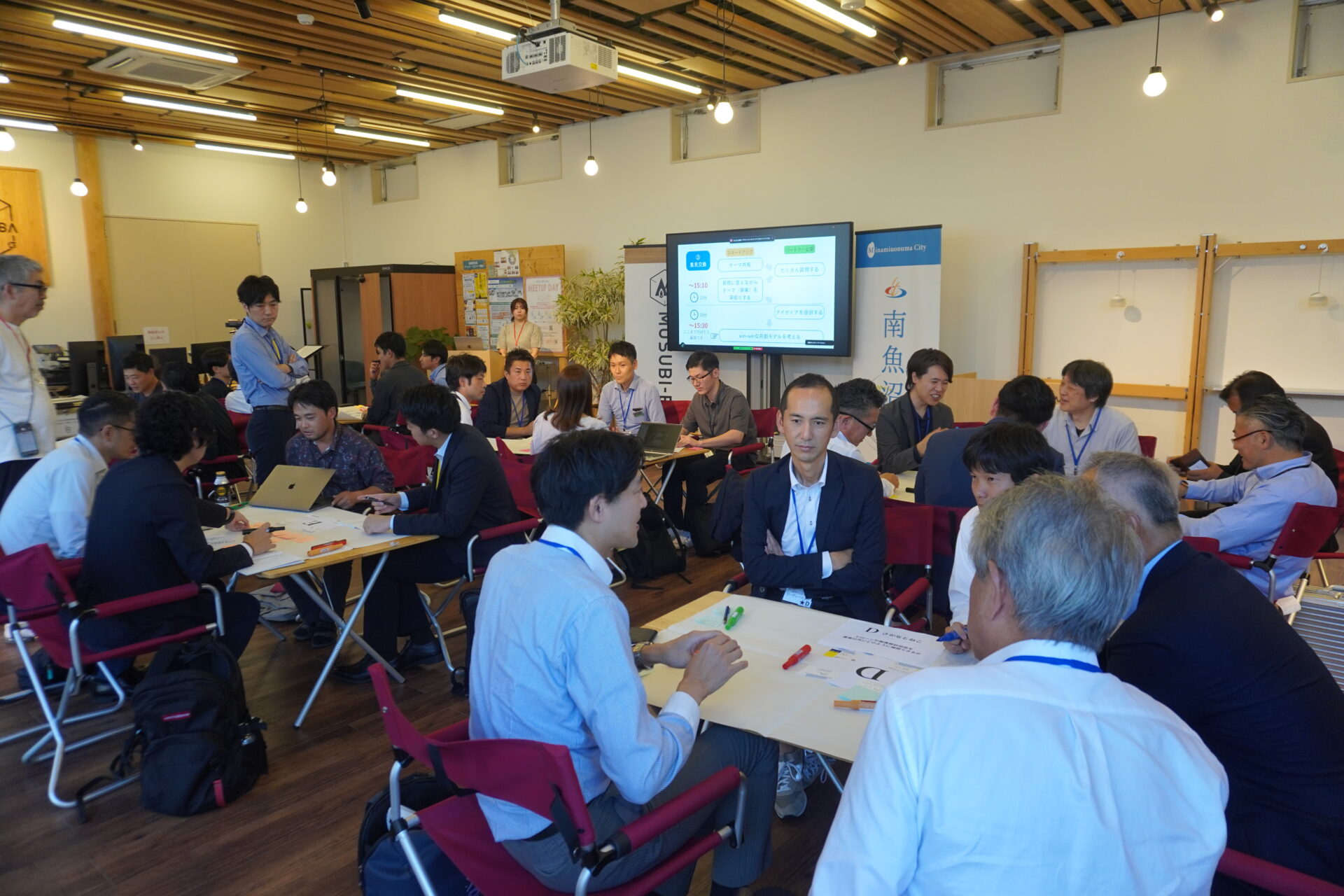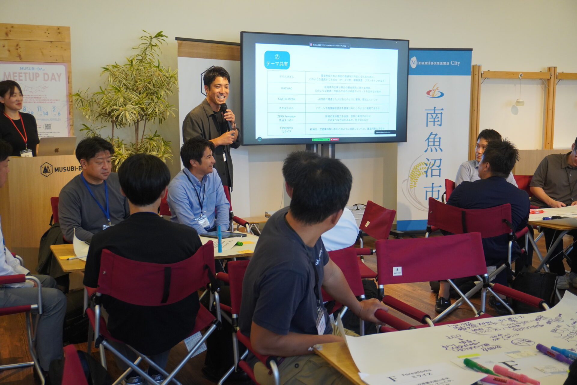 登壇したスタートアップ企業に加え、過去に登壇した南魚沼発の企業「Forest Folks」「ミライス」も参加し、それぞれの事業テーマに沿ったグループに分かれてディスカッションを行いました。